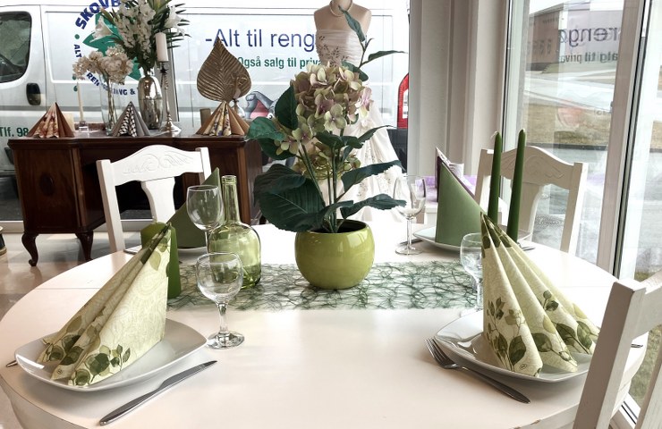 Der er altid dækket op til fest hos Skovbo-Ren på G.V. Spindlers Vej i Hjørring, hvor man kan hente inspiration og købe alt til opdækning og pynt til et festligt bord.