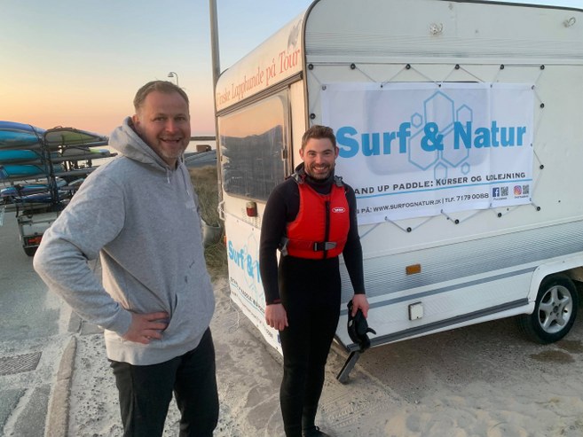 Mads Halle Bruun og Lars Kruse Jensen havde Store Bededag taget bestik af vejrsituationen og med virksomheden Surf og Natur meldt ud på de sociale medier, at der om aftenen ville være undervisning i Stand Up Paddling fra Husmoderstranden ved Hirtshals.