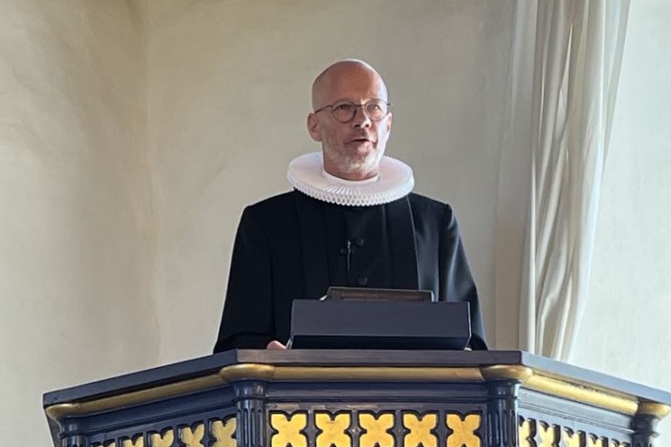 Herefter overtog Svend Thorhauge ansvaret for den resterende del af gudstjenesten. I sin første prædiken i Tornby Kirke tog den nye præst udgangspunkt i forfatteren Henrik Pontoppidans forfatterskab og hans tilgang til jordisk gods, arv og fordelingsregnskab.