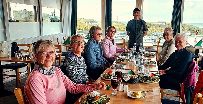 Efter turen samledes deltagerne på Restaurant Munch, hvor der blev trukket lod om to flotte sponsorgaver. Berit vandt en flagranke og en toilettaske fra IV-Flag, mens Jytte modtog et signeret eksemplar af keramiker Dorthe Hansens nye bog om kagerne fra Sørig Gamle Skole. Begge gaver blev modtaget med stor glæde og taknemmelighed.