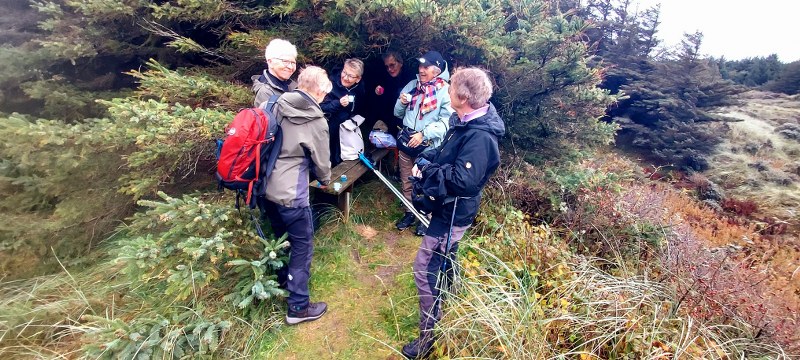 Selvom vejrudsigten truede med regn, blev det kun til lidt støvregn i begyndelsen af turen. Resten af dagen bød på tørvejr, smukke efterårsfarver, en regnbue og strejf af sol, hvilket skabte perfekte rammer for en stemningsfuld vandring. Deltagerne nød udsigten og hinandens selskab, og turen blev en påmindelse om, hvor stor betydning naturen og fællesskabet har – også når formålet er at støtte en god sag.