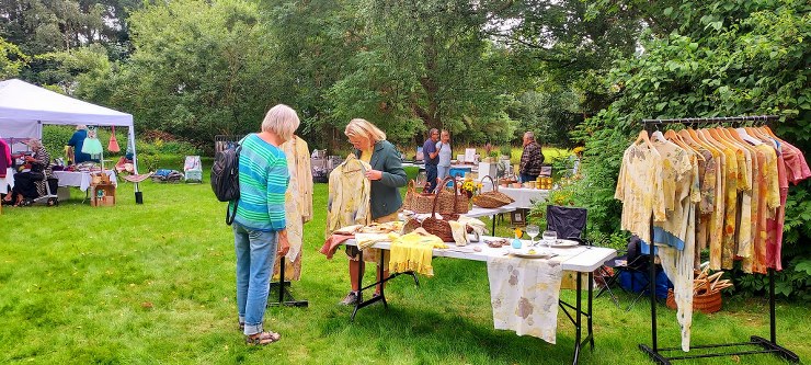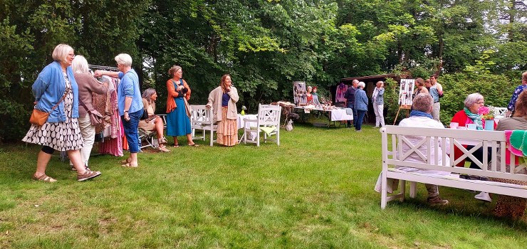 Lækker kage, the og kaffe blev søndag nydt med udsigt til adskillige stande med smukt kunsthåndværk hos Jytte Meier ved Tronsmark Gl. Skole, Galleri & Kunstværksted.