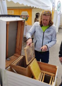 Hos biavlerne stod den på tavleundervisning… bier er fantastiske… både de vilde og de tæmmede, og for at kunne håndtere dem ordentligt skal både viden og udstyr være i orden… Sidste år havde jeg fornøjelse af at overvære slyngning af forårshonning på Landbrugsmuseet i Mosbjerg… Det var en stor – og ganske velsmagende – fornøjelse… prøv det, når museet tilbyder indblik i bier og blomster…