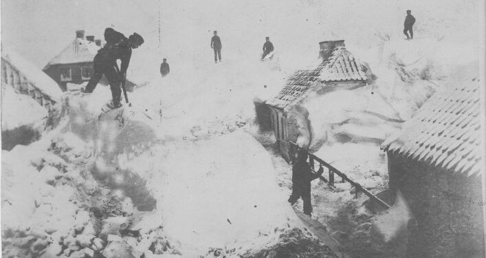 ”… da Sneen ikke blev skaffet væk … [kunne den] efterhaanden naa op til Hustagene, og der blev langs Husrækkerne gravet en Gang for at Husbeboerne kunde komme ud og ind i deres Lejligheder.”