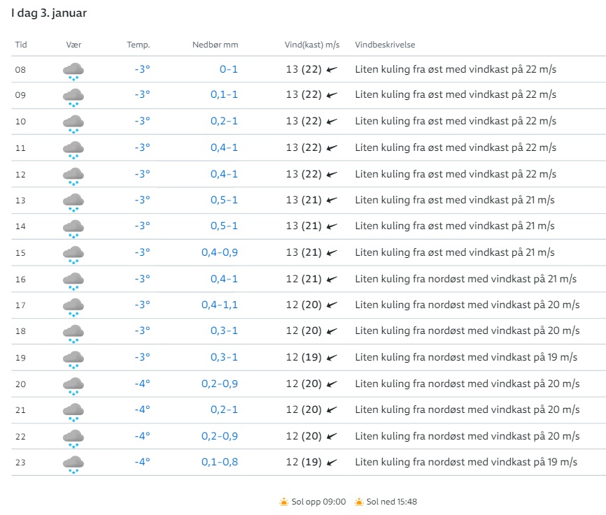 Onsdagens vejr i og omkring Hjørring ifølge den norske vejrtjeneste YR.NO.