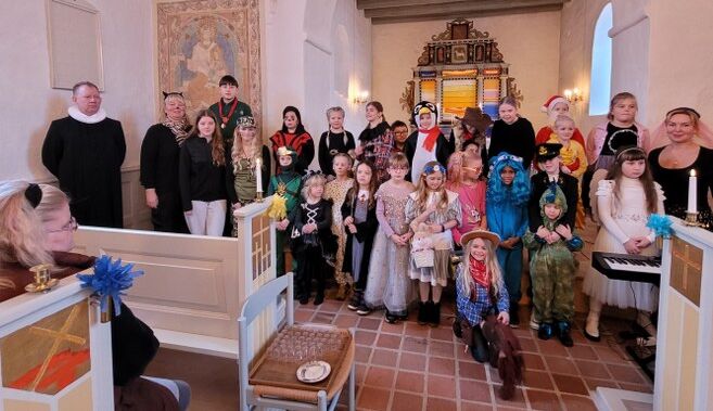 Arrangementet begyndte i Bindslev Kirke med en fastelavnsgudstjeneste. Børnekoret var flot udklædt og sang flere sange for de knap 100 personer i kirken.
