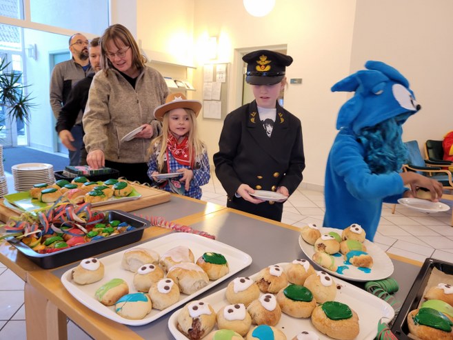 I Sognehuset havde menighedsrådet dækket bord samt lavet saftevand i flere udgaver, kaffe og te. Spejderne havde bagt fastelavnsboller og Bindslev Handel og Erhverv stod for slikposer til de godt 50 børn.