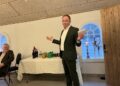 Et musikalsk indslag under festen blev leveret af smågriseleverandøren til Tangsgård, Palle Joest Andersen, der høstede stort bifald for sin lune sang på vendelbomål.