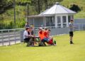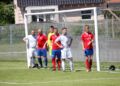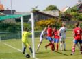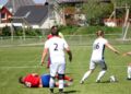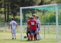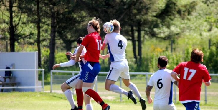 Det tog Jeppe Vranager sig af, men blev reddet af udeholdets målmand. Kampen slutter 4-0 til Hirtshals på en dejlig og varm sommerdag.
