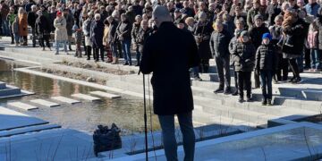 Vinden var bidende kold lørdag formiddag, men solen skinnede minsandten, som arrangørerne på forhånd modigt havde lovet det, da vandet med tre taler og hornmusik blev indviet i Strømgade. Vandet udspringer dermed allerede nu fra Sct. Olai Plads, løber ned gennem Strømgade og skal efter planen løbe tværs over Springvandspladsen videre gennem Jernbanegade og ende … Læs resten af Solen skinnede og vandet strømmede