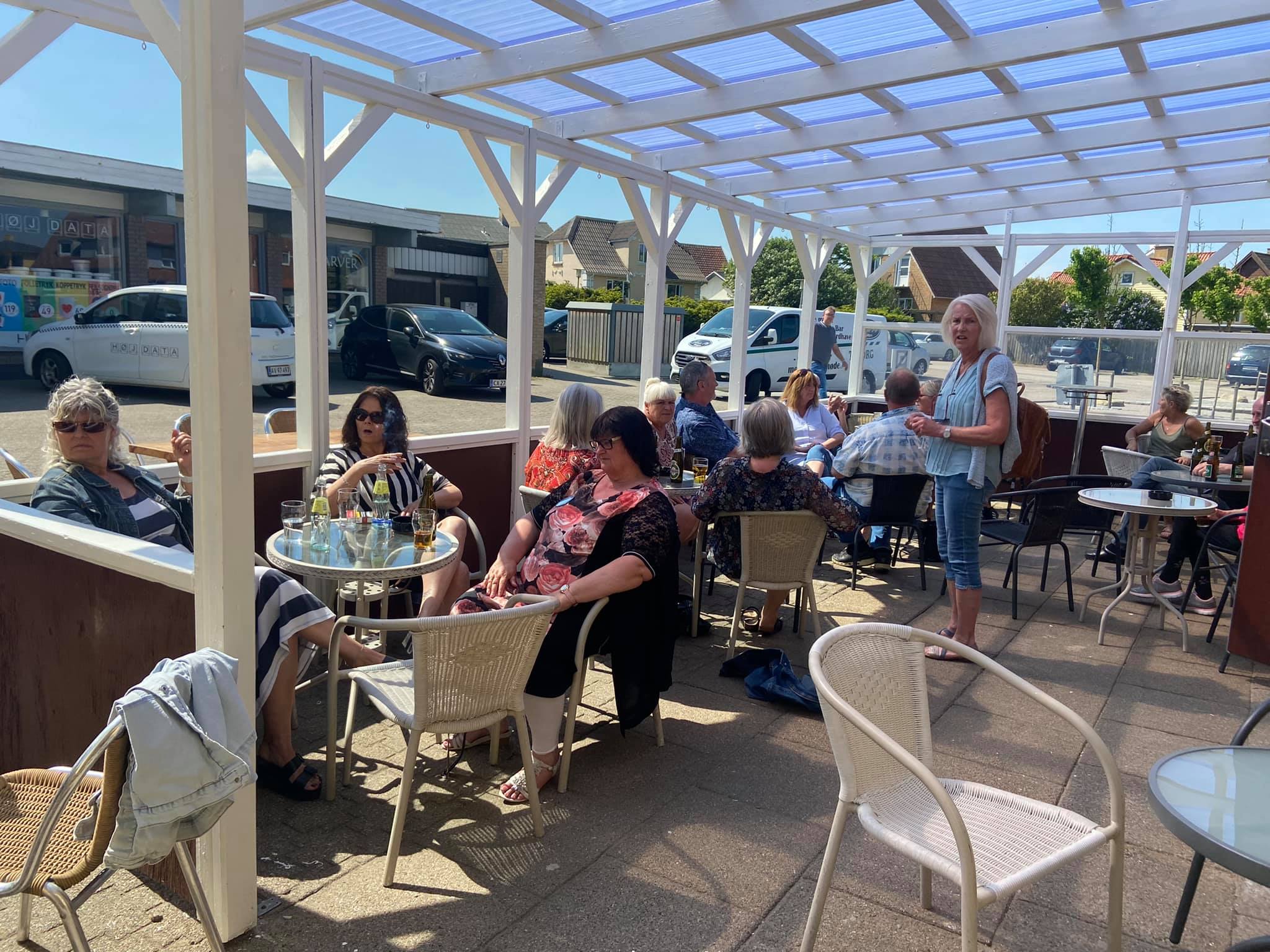 Det blev en rigtig god dag, hvor solen skinnede og de mange gæster kunne sidde udenfor ved Færgekroen. De nye ejere Merete og Peter holdt en flot afskedstale, hvor gavebordet var fyldt med flotte gaver.