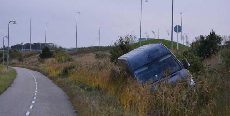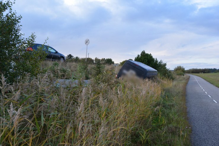 Fredag omkring klokken 17 fik Nordjyllands Politi en anmeldelse om, at en personbil havde været ude for et uheld på E39 i nordgående retning øst for Horne. Her var en person i en mindre varevogn kørt ud over en skrænt.