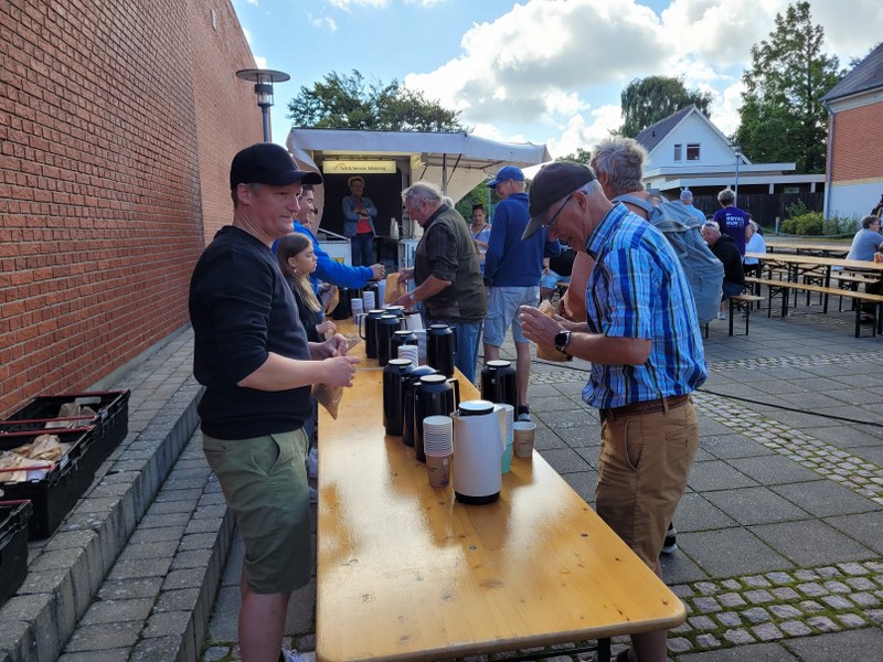 Årets andet Torvemarked er startet med rigtig mange mennesker i kø til kaffe og rundstykker samt solstrejf i Bindslev.