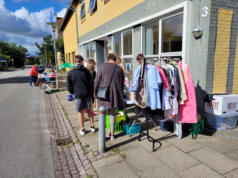 Denne indtil videre solbeskinnede lørdag er det musikerne i den akustiske duo Wings, der spiller op i Bindslev. De mange boder er stillet op omkring torvet og ned ad Nørrebro.