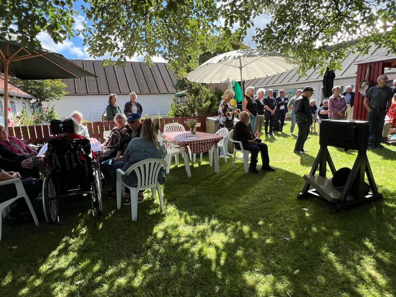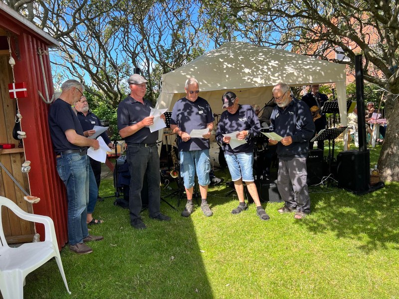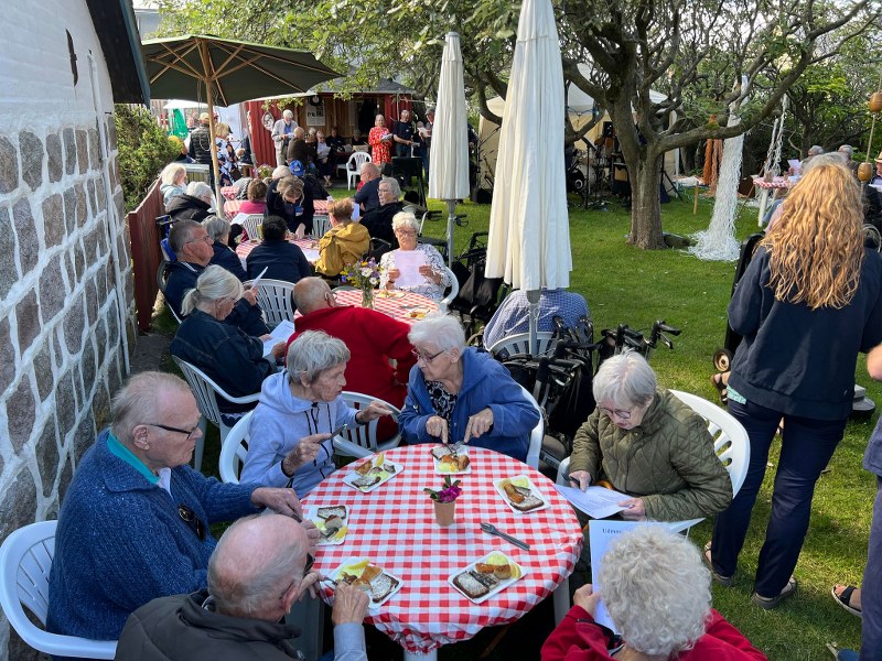Efter velkomsten og og åbningstalen var der hyggelig fællessang i den idylliske have, hvor vejrguderne rent faktisk i år havde forbarmet sig og lod solen skinne. Blandt de mange gæster var blandt andet en hel del glade beboere fra Ældrecenter Vikingbanke.