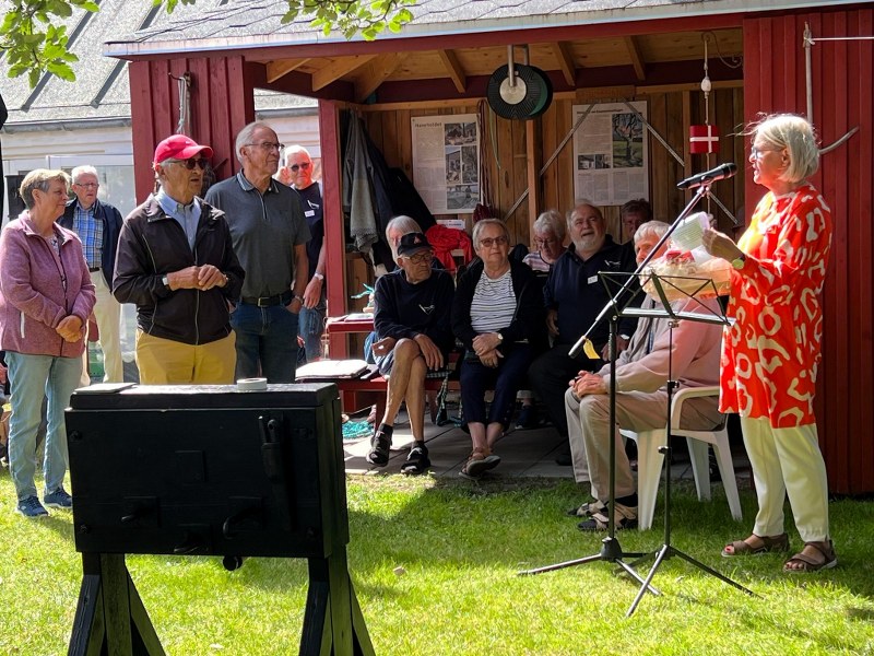 Joan Pedersen redegjorde indledningsvis for dagens og sommerens program, hvorefter det som allerede antydet var en ligeså veloplagt Knud Størup, der kom omkring stedets betydning for turismen og lokalbefolkningen, idet han især roste det store frivillige arbejde hos Haveholdet og Fiskekrogen.