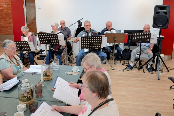 Efter kaffebordet var det tid til en hyggelig “ønskekoncert”. Harmonikaklubben delte sanghæfter ud med hele 58 sange, og publikum var ikke sene til at komme med ønsker. Forslagene væltede ind, og scenen var sat til fællessang, hvor alle kunne synge med på deres yndlingsmelodier.