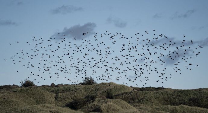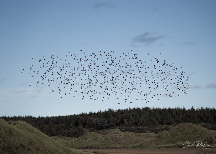 Flokkene kan være på mange tusinde. Man kan også se synet ved at køre ned til enden af Rævskærvej og gå op på én af de højeste klitter med udsyn mod syd i retning af Liver Å. Pludselig en dag kan alle fuglene være væk. Så er de trukket sydpå, måske til Vadehavet for at deltage i sort sol dér, slutter Kurt Prentow.