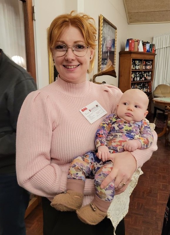 Rengøringsmedlem Camilla Isaksen havde lyttet opmærksomt og hørt, at man skal have BNI ind med modermælken. Derfor havde hun sin søde datter med til mødet. Et nyt medlem i teamet er fotograf Janne Haslund.