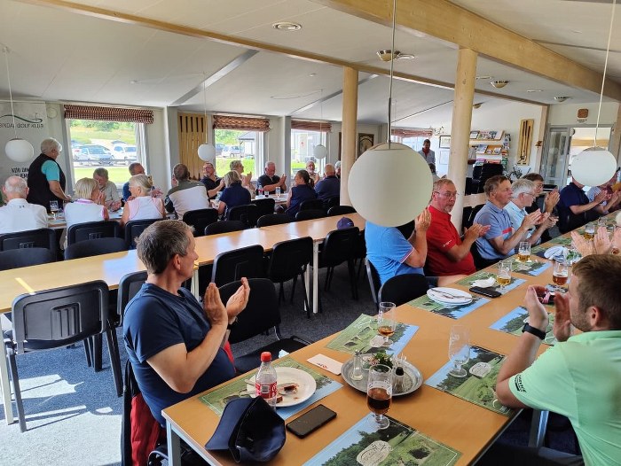 Herefter valgte Poul Laursen at takke bestyrelsen i Sindal Golf Klub for deres store indsats og tak for matchen – det blev efterfulgt af klapsalver fra de mange frivillige.