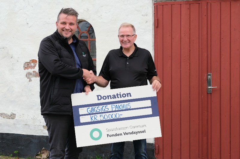 Forleden besøgte afdelingsdirektør Mads Nielsen fra Sparekassen Danmark Sindal Afdeling Gøgsigs Pakhus, og med sig havde han en stor donation fra Sparekassen Danmark Fonden Vendsyssel på 50.000 kroner til støtte for renoveringen af det gamle pakhus.