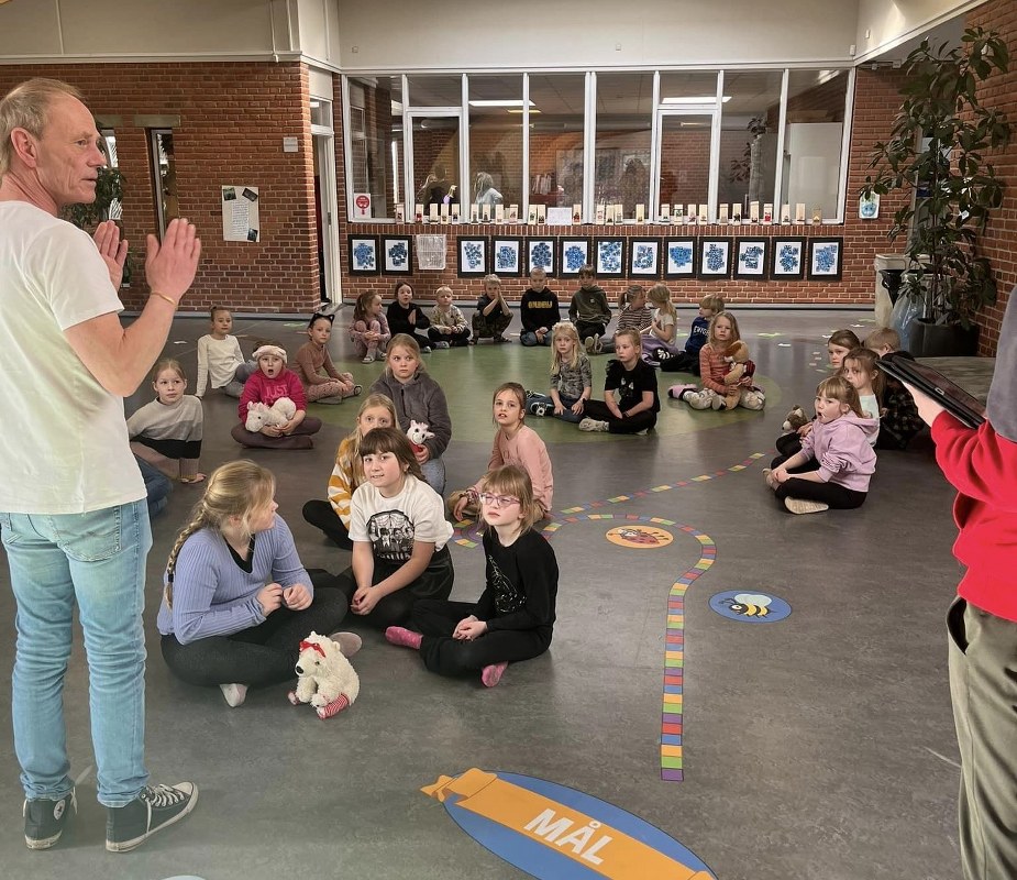 Pædagog Karl Aage Broen indskærper den etiske fording om tab og vind med samme sind ved torsdagens spillebule på Bindslev Skole.