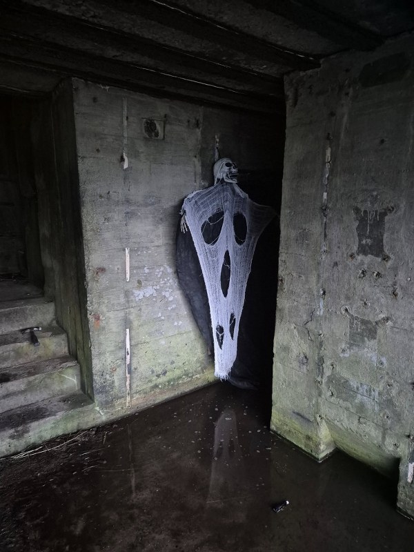 Med lommelygter i hænderne og nerverne uden på tøjet blev 22 elever inddelt i tre hold og sendt ud i det mørklagte bunkersystem. Målet: at finde den sagnomspundne tyske feltlæge, som ifølge lokale fortællinger stadig går hvileløst rundt i de kolde betonrum. Bunkerne var pyntet med skeletter, spindelvæv og levende skuespillere, der med velplacerede gys sørgede for, at ingen gik uanfægtet gennem natten.
