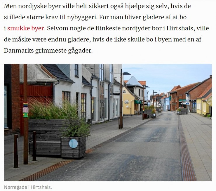 I skriveriet slår Nordjyske så denne Store Bededag fast, at ”selv om nogle af de flinkeste nordjyder bor i Hirtshals, ville de måske være endnu gladere, hvis de ikke skulle bo i byen med en af Danmarks grimmeste gågader”.
