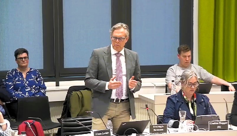 Erik Høgh-Sørensen ved et byrådsmøde i Hjørring Kommune. Foto: Screendump.