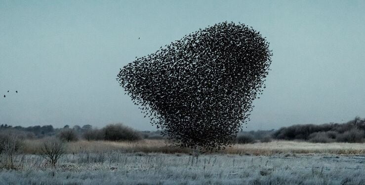 “Når de utallige fugle samles i store flokke, før de slår sig ned i rørskoven i skumringen, viser de deres utrolige samarbejdsevner og navigationsfærdigheder. Fra tid til anden tilføjes en ekstra dramatisk dimension, når rovfugle angriber stæreflokken, der som modtræk udfører en betagende ballet om liv og død. Stærene bevæger sig som én samlet organisme, der med stor styrke modsætter sig enhver ydre trussel. Dette skaber et stærkt visuelt udtryk – som en blæktegning eller et kalligrafisk penselstrøg, der maler sig mod himlen.”