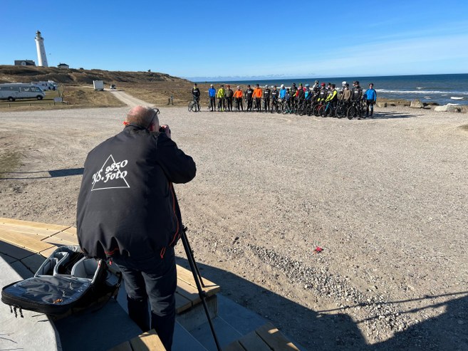 Efter en peptalk og status på klubbens arbejde cyklede de 28 ryttere ned på Leret, hvor de stille op til fotografering hos Kurt Sørensen fra KS-Foto Homebythesea.