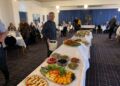 Dernæst blev buffeten med tapas fra slagterafdelingen præsenteret, hvorefter den egentlige vinsmagning kunne begynde. Aftenen forløb så på den den måde, at man kunne få smagsprøver på de mange vine ved de forskellige repræsentanter fra firmaerne. Ligeledes var der mulighed for at smage både gin og rom. Lækre petit fleur var der også fra Bageriet Ingeborg.