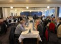 Købmandsparret Pia og René Ejstrup Larsen fra SPAR kunne torsdag aften som arrangører byde velkommen til de mange fremmødte og de forskellige firmaer ved vinsmagningen på Hotel Hirtshals.