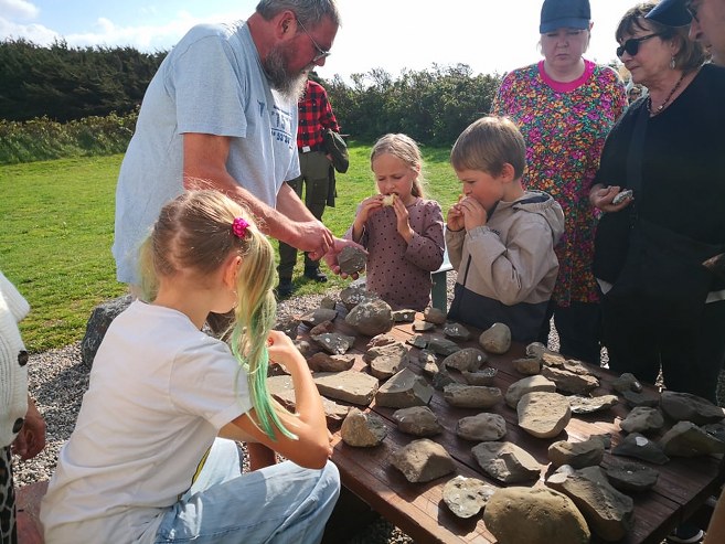 – Tommy har i øvrigt også udlånt en hel montre fuld af specielle fossiler til den store udstilling på Statens Naturhistoriske Museum. Heldigvis havde en del af de besøgende også medbragt fossiler og sten, som vi fik hjulpet dem med at bestemme, slutter Lars Danielsen.