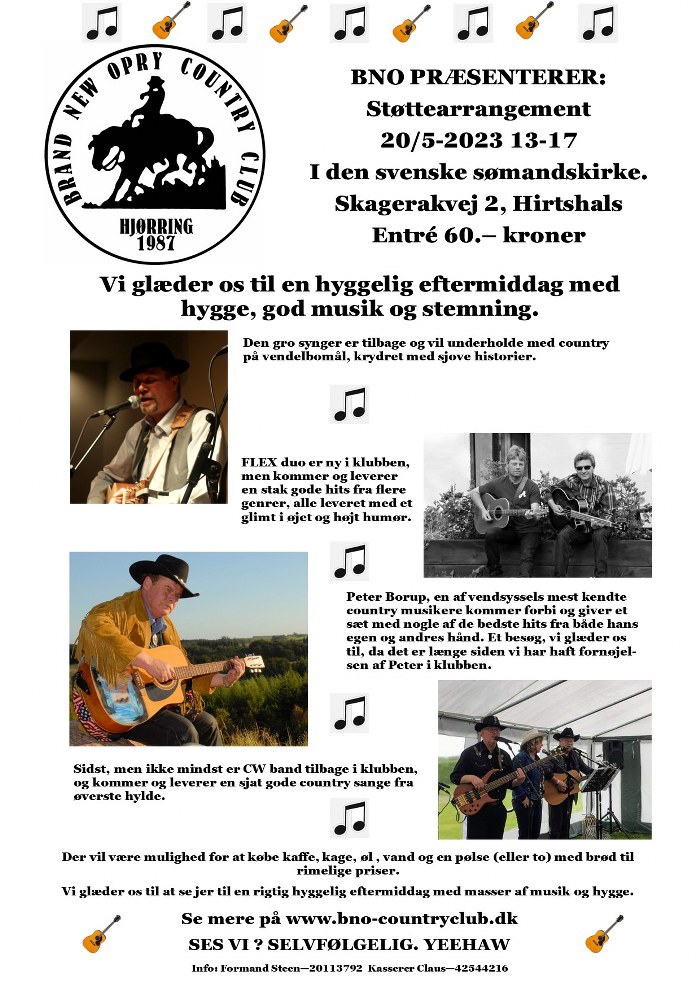 Danmarks ældste country klub inviterer til en eftermiddag med god musik og stemning den 20. maj i Sømandskirke.