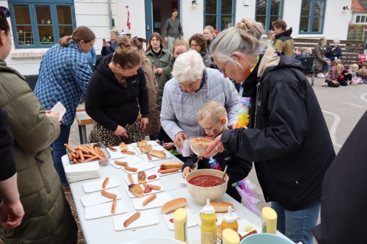 Vel retur efter den lange og oplevelsesrige tur ventede der en kærkommen forfriskning. Sulten havde meldt sig hos de mange små karnevalsgæster, og der var stor rift om de grillpølser med brød, som Sparekassen Danmark Sindal Afdeling generøst havde sponsoreret. Forældrene ved grillen havde travlt med at følge med den store efterspørgsel. Som en sød afslutning på festlighederne blev der budt på flødeboller, sponsoreret af Børnehuset Sindal.