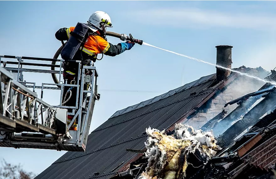Han meddeler at alle rum i huset har taget skade af branden, og første sal er helt udbrændt.