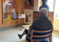Deltagerne kom i god tid og nogle gik en tur rundt i stuerne på egen hånd. Efter velkomst ved billedkunstner Laila Pallisgaard og yogalærer Maj-Britt Zielke var det tid til yoga i hjørnestuen.