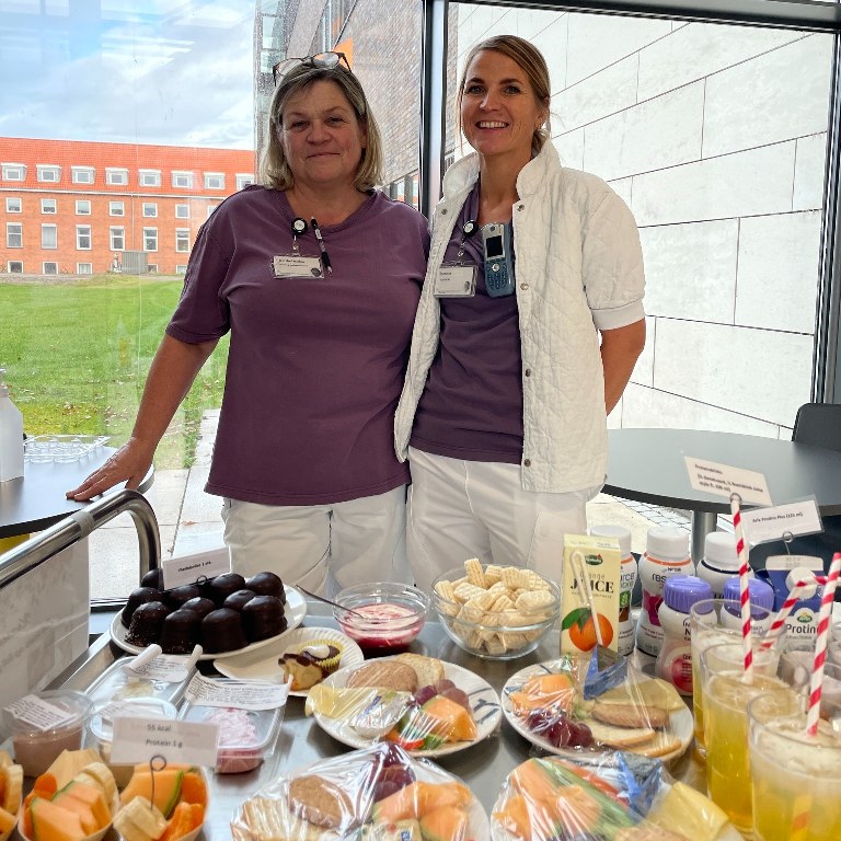 I anledning af Ernæringsugen har vi også skålet for den gode og rigtige ernæring. Sammen med frokosten blev der serveret saftbaseret proteindrik med hyldeblomstsmag, som er et af de mange tilbud, som køkkenet producerer for at kræse om patienterne og bidrage til den rette ernæring – også når appetitten er lille.