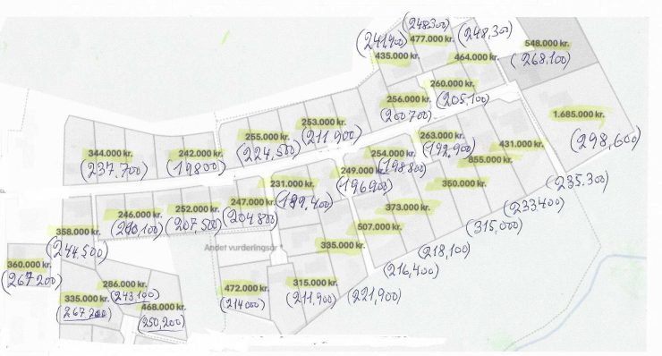 Den tidligere grundværdi er påført med kuglepen, og det trykte tal viser den aktuelle grundværdi. At der sker stigninger, er naturligt og fuldt forståeligt.