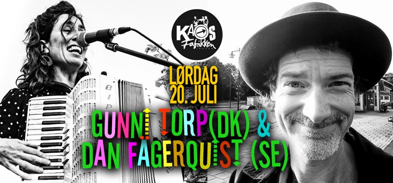 Danske Gunni Torp og svenske Dan Fägerquist kan lørdag aften klokken 20 opleves i en dobbeltkoncert hos Kaosfabrikken i Løkken.