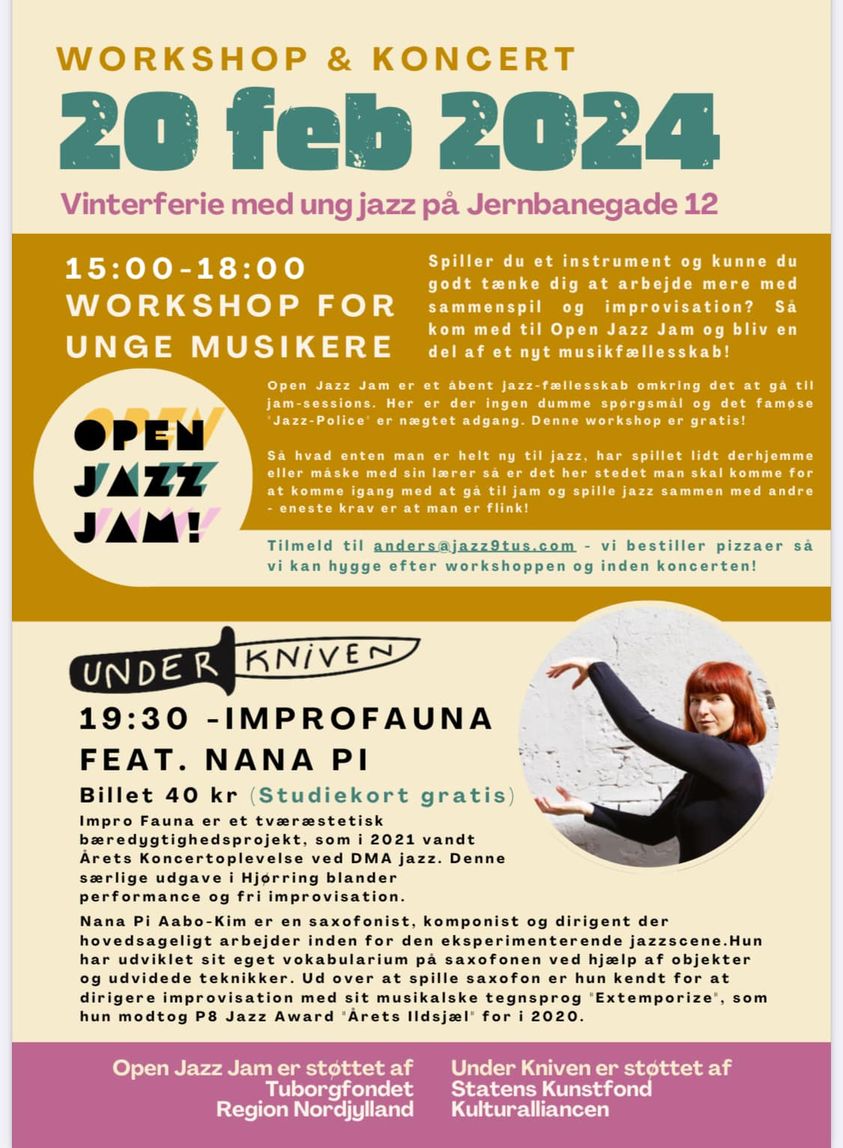 Det er nemlig Open Jazz Jam og JAZZ9TUS samt Meutivitis Impro Fauna, der gæster Jernbanegade 12.