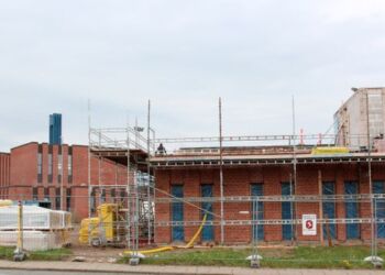 I strålende sol var der festligt rejsegilde på den nye tilbygning til Sindal Hallerne