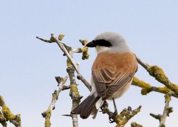 Tornskaderne er ifølge mange fugleinteresserede en rovfuglelignende spurvefugl. For os andre kan det rovfugleagtige måske være svært at få øje ...