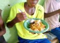 Et af projekterne er uddeling af mad til børnene i slumbyen “Liberian Camp”. Denne gang kunne maden suppleres med uddeling af flotte gule t-shirts, som dermed har lyst op i påsken.