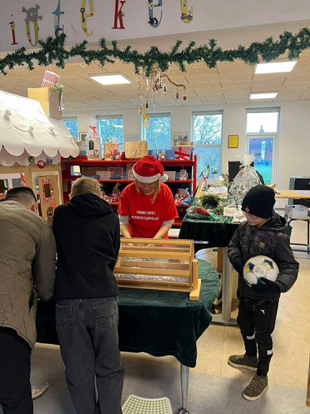 Ikke færre end 500 æbleskiver blev serveret igennem den gamle skolebods luge. Tombolaen var udsolgt på rekordtid. 20 kg. ler blev brugt til at lave en masse fine juledekorationer i SFO’en.