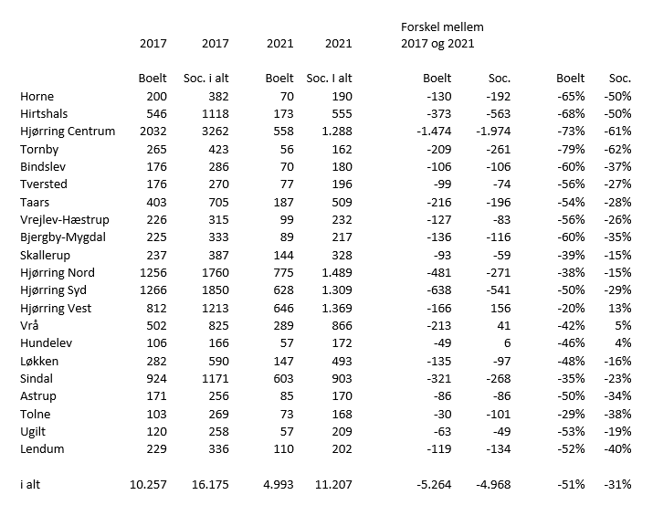 I alt mistede den nu snart forhenværende borgmester 5.264 personlige stemmer. Tilbagegangen i Hjørring by tegner sig altså for mere end halvdelen af tilbagegangen.