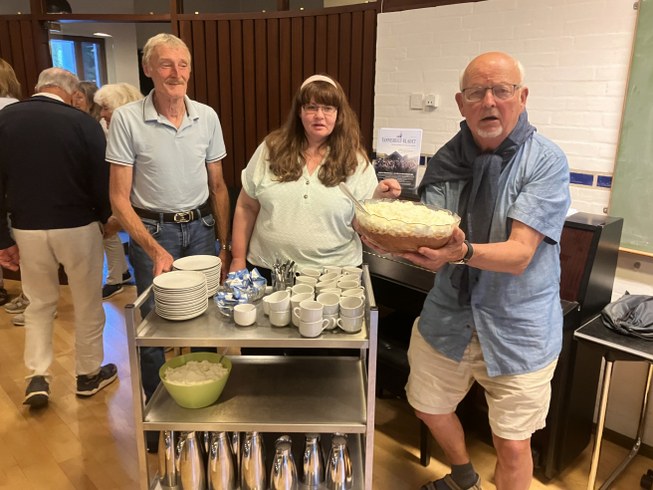 Biograf-frivillige Annemarie og Jan Petersen serverede ekstra meget vand og som altid kaffe og kage, som denne gang var dejlig rabarbergrød med flødeskum. Prisen for at være med er beskedne 50 kroner for en sæson (børn under 18 år gratis), som afregnes hos kassemester Susan Piil.