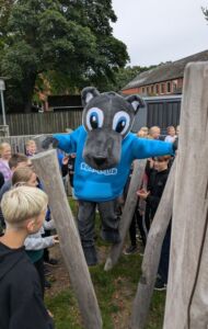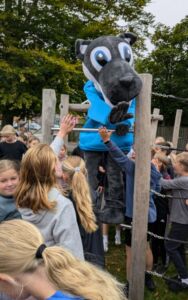 Eleverne fra 4.-6. klasse var med til indvielsen og kunne blandt andet møde Bilkas (og dermed også A-Z’s) maskot, Ulven Billie.