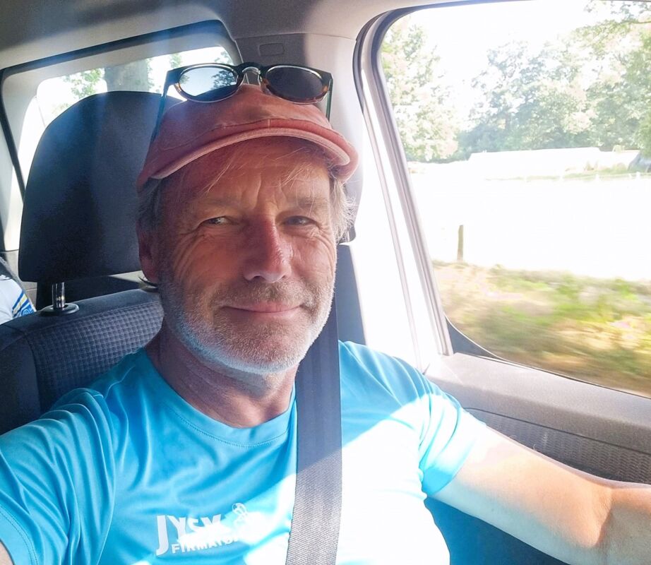 Vores lille maskot Peter Pedal holder øje fra doktorbilen, noterer læge Jesper Holmelund, mens der slappes af efter lidt overophedning i Tyskland.